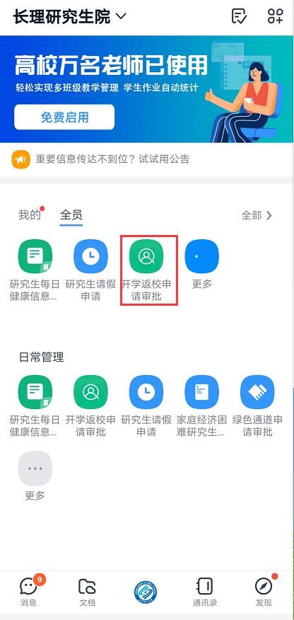1.完成连续14天健康打卡后,研究生可通过手机登录“钉钉”平台,提交来校申请。