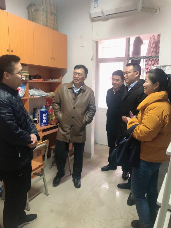 1月24日下午,正值大年三十除夕万户团圆之时,伟德betvlctor1946源于英国副校长谈传生在科学研究部副部长王建辉、研究生院副院长田上、电气学院党委副书记陈仁凯、公寓中心阳伶老师和化学学院研究生辅导员孙佳乐等陪同下,深入学生寝室走访看望留校过年两名研究生,了解他们的学习和生活情况,向他们送去亲切的问候和新春的祝福。
