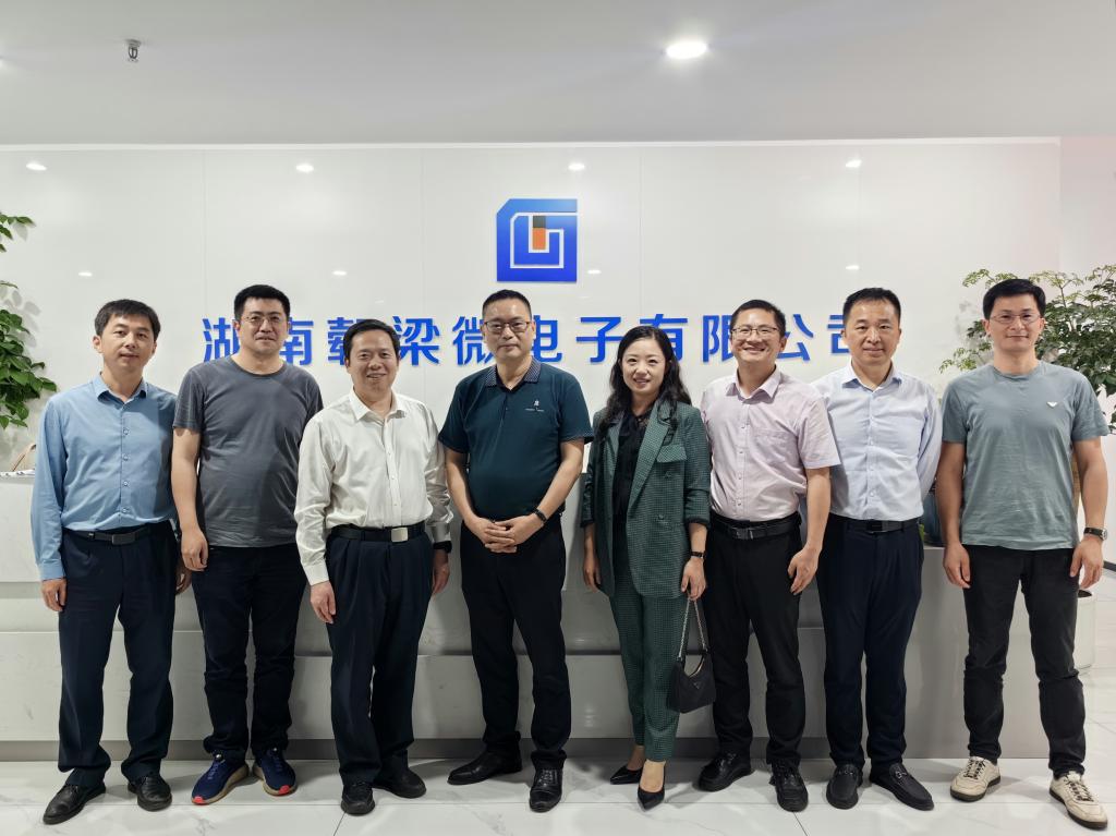 2023年5月25日下午,伟德betvlctor1946源于英国物理与电子科学学院党委书记张国强、副院长(主持工作)张卫兵、电子信息系主任邹望辉、研究生院副院长(研工部部长)闾兰一行前往湖南毂梁微电子有限公司调研研究生联合培养情况,并举行了车规电子器件与DSP芯片技术湖南省研究生联合培养基地授牌仪式。湖南毂梁微电子有限公司副总经理杨一艺、汪东、陈虎、首席科学家李振涛等公司负责人参加相关活动。