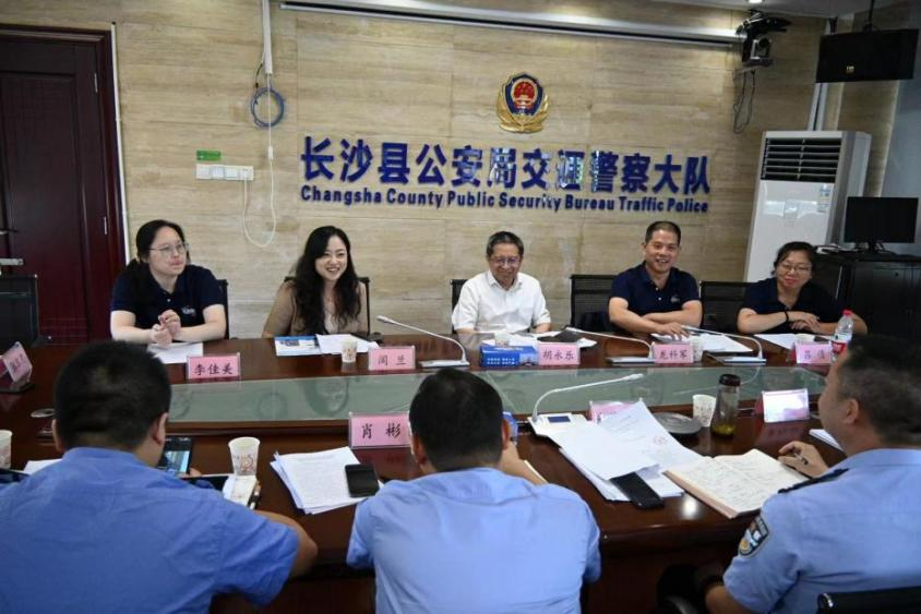 上午9点,胡永乐一行抵达长沙县公安局交警大队会议室举行座谈,座谈会上,胡永乐等人深入了解了长沙县交通助力乡村振兴的工作思路和重点任务,听取了长沙县交警大队针对长沙县现有人车路基本交通要素情况、交通事故预防及治理情况、农村典型交通违法行为及成因分析、现有交通安全宣传手段及效果评估等方面的重要汇报。湖南省车路协同公司负责人黄松山针对在长沙县V2X新基建的应用情况进行介绍。校领导以及长沙县交警大队负责人同实践团成员进行了亲切友好的交谈,并对暑期专业实践团成员的工作表示充分支持。胡校长嘱咐同学们,要抓住本次暑期专业实践的机会,在调研中掌握现有矛盾,找到社会痛点问题,在具体案例分析中,将理论和实践相结合,发挥个人主观能动性,在服务乡村振兴中“解民生,治学问”。