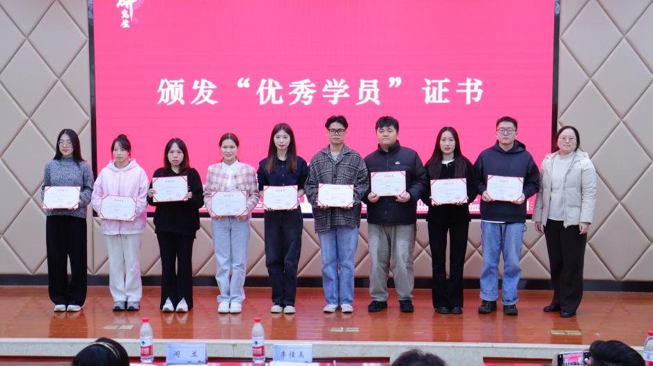 接下来,闾兰、李佳美为26名学员颁发本次团学组织培训班“优秀学员”证书。