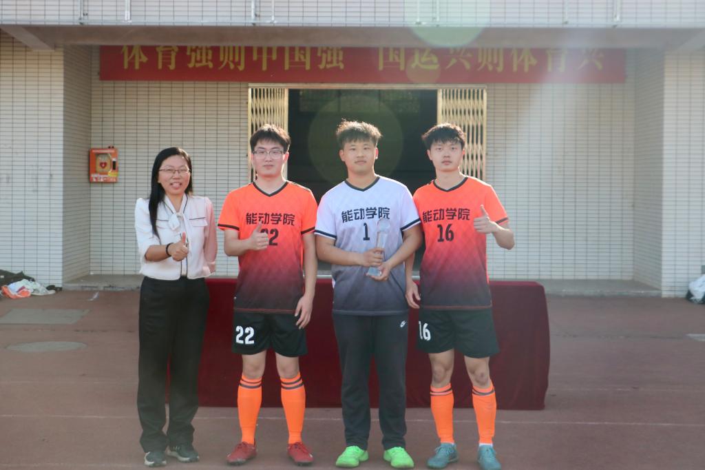 吕倩、李佳美为获奖集体和个人进行颁奖。能源与动力工程学院代表队获得此次足球赛冠军,电气与信息工程学院代表队获得亚军,材物设联队获得季军;最佳啦啦队获得者为计算机学院与经济与管理学院联合啦啦队、水利与海洋工程学院啦啦队;能源与动力工程学院毛梓欢获得最佳射手称号;交通学院侯育东等9名同学获得优秀运动员称号。