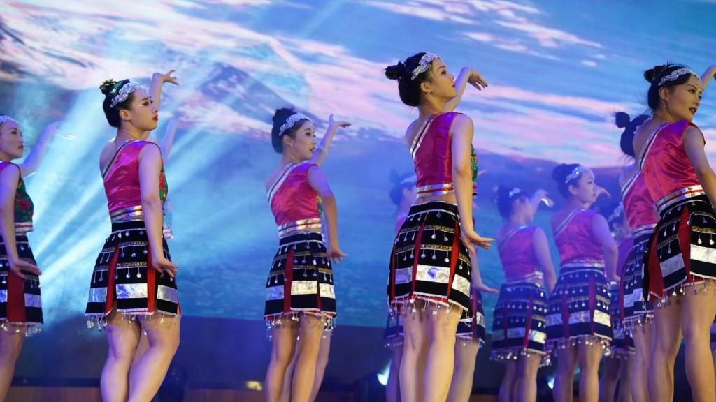 本次晚会以“璀璨新研途,青春谱华章”为主题,由“放学别走”乐队带来开场歌曲表演,瞬间点燃晚会现场氛围。随后在艺术团舞蹈队带来的壮族舞《走在山水间》中,晚会正式拉开帷幕。舞蹈演员们身着传统壮族服饰,以热情而又曼妙的舞姿展现少数民族特有的浓郁风情和文化底蕴,翩翩舞姿获得了阵阵掌声。由文新学院带来的语言节目《长理联播》以新闻播报的形式,娓娓道说长理故事,妙趣横生的同时抒发长理情怀;在朗诵节目《请党放心,强国有我》中,艺术团主持人队用最真挚的声音表达对党的赤诚忠心,向党致以青春的礼赞。