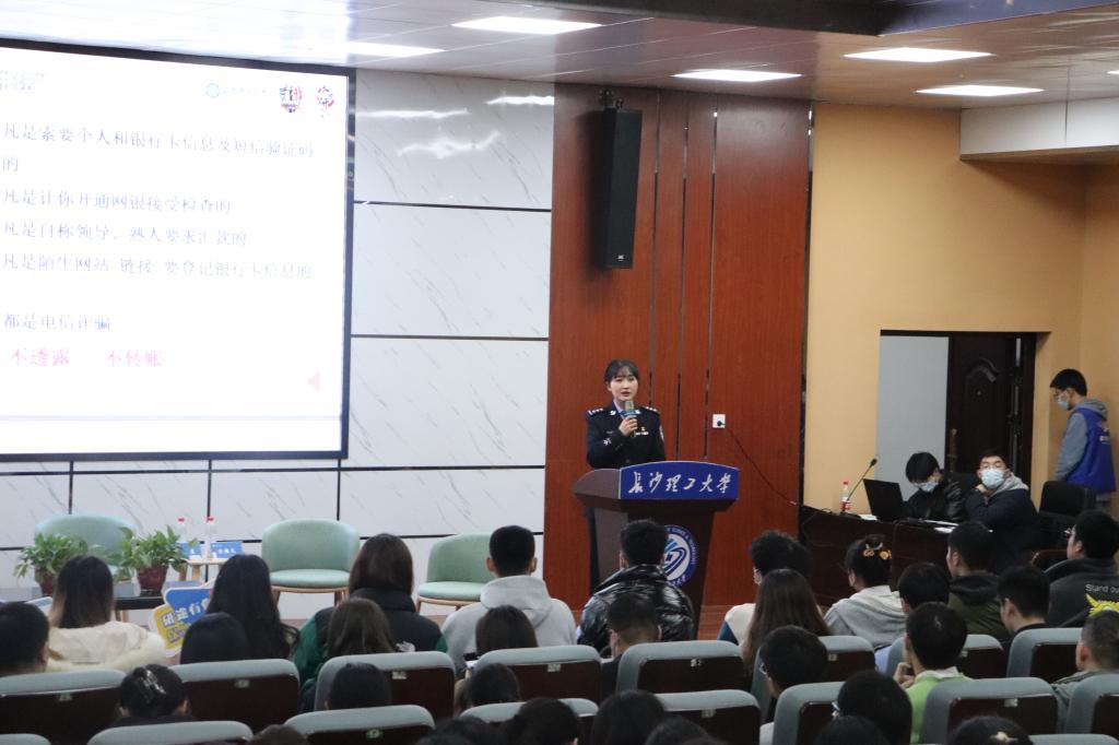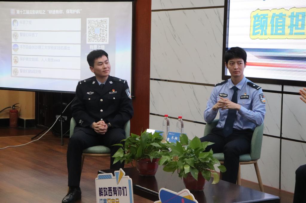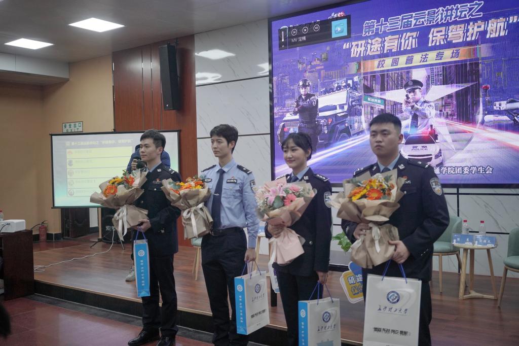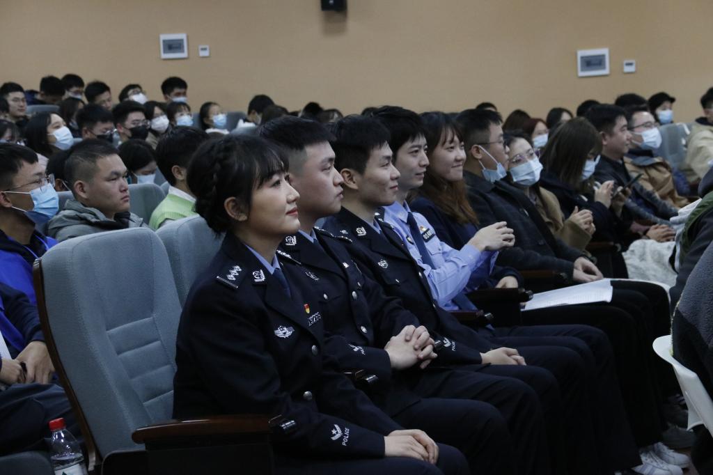 12月22日晚七点,《守护解放西》的“明星”警官及节目组应伟德betvlctor1946源于英国校研究生团学组织的邀请做客云影讲坛,在金盆岭校区四教报告厅举行了一场“研途有你,保驾护航”主题讲座。来自长沙市坡子街派出所的陈慧、涂瀚文、欧阳睿乙、齐翔宇警官受邀出席,为现场200余名师生带来了一场别开生面的校园普法活动。