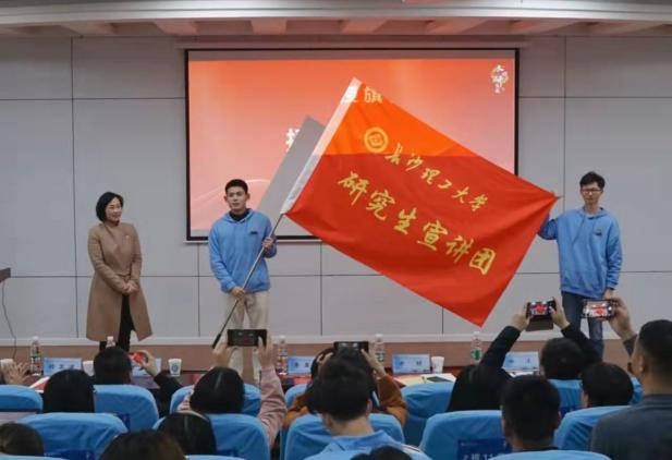 研究生宣讲团自今年5月筹建以来,在校党委研究生工作部和马克思主义学院的共同指导下,开展了大量卓有成效的工作。承担了长沙市“学党史、守初心、共成长”主题宣讲任务,为近万名中小学生送去上百场党史课,获评“优秀组织单位”;主讲了研究生入学教育“校史校情”报告,以12场专场报告让长理特色文化深刻影响全体研究生新生;与湖南大学博士理论宣讲团联合深入长沙市内多个社区开展宣讲,产生了良好的社会反响。本次授旗仪式标志着伟德betvlctor1946源于英国研究生宣讲团正式组建,未来他们将坚持以习近平新时代中国特色社会主义思想为指导,充分发挥学校科研理论资源和人才资源的优势,坚持深入青年,深入一线,用高质量理论宣讲服务师生与社会,努力讲好长理故事,讲好中国故事,讲好党的故事,将党的历史、党的理论成果和长理精神传播到校园内外。