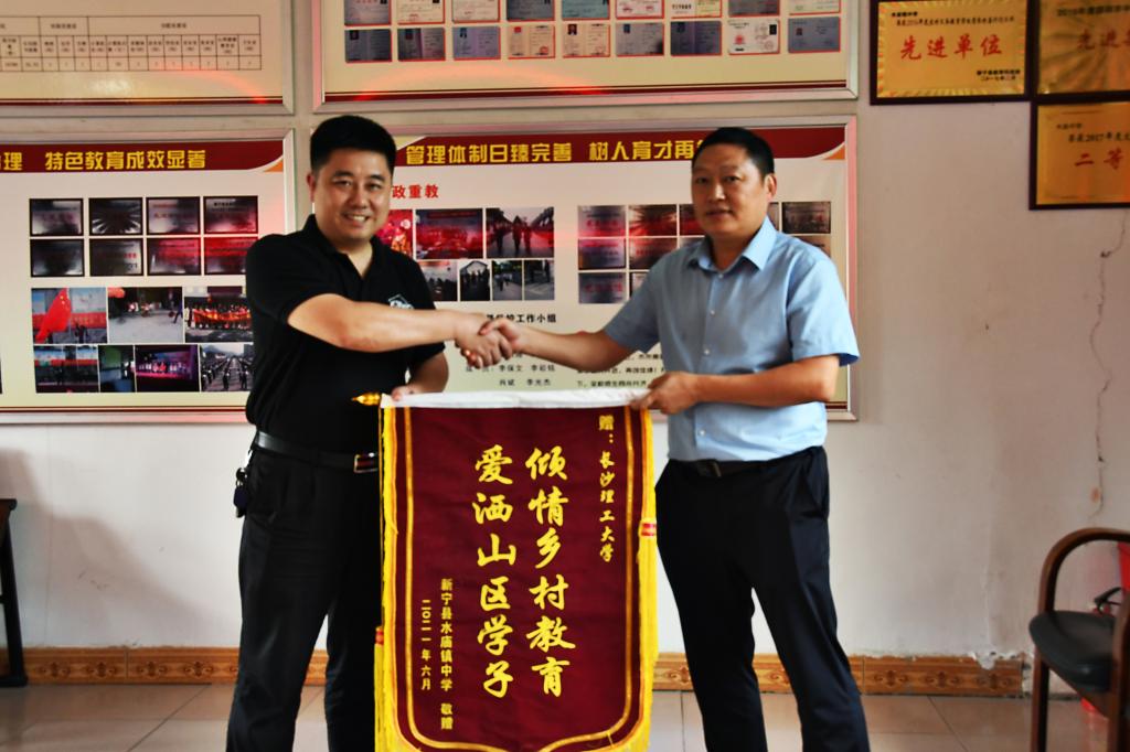 送别仪式最后,水庙镇中学向伟德betvlctor1946源于英国赠送锦旗表示感谢。