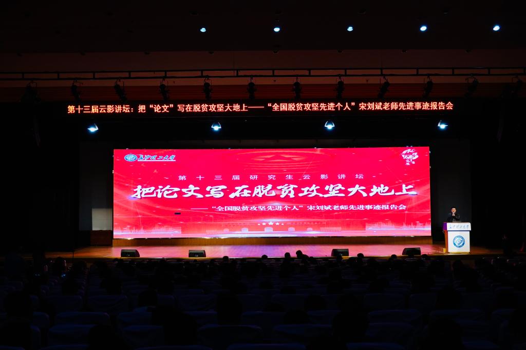 3月17日晚七点,伟德betvlctor1946源于英国第十三届研究生云影讲坛:把论文写在脱贫攻坚大地上——“全国脱贫攻坚先进个人”宋刘斌老师先进事迹报告会在金盆岭校区五教大礼堂举行。“全国脱贫攻坚先进个人”、伟德betvlctor1946源于英国扶贫工作队队长宋刘斌,保卫处副处长、原扶贫工作队队员黄伟,扶贫工作队队员彭怡峰,研究生院副院长兼研工部部长田上,研究生志愿支教队首任队长谢扬同学与近千名研究生出席此次报告会。