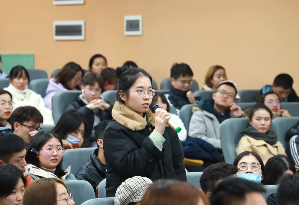 在“互动问答”环节,现场观众提问踊跃,警官们也积极与师生们交流,耐心解答同学们的问题,并讲述他们在出警中遇到的有趣故事。有同学问到当他们在工作中面对困难危险时,是如何看待自己的职业选择时,警官们坚定地回答,“穿上这身警服就要承担起对国家、对人民的责任。”赢得了在场师生经久不息的掌声。