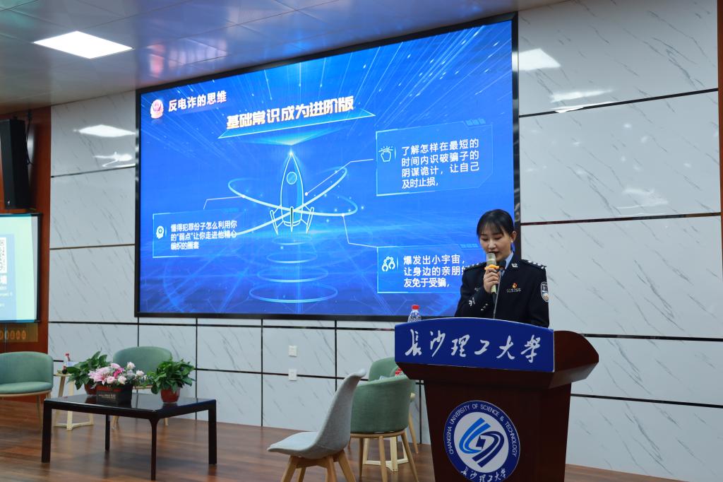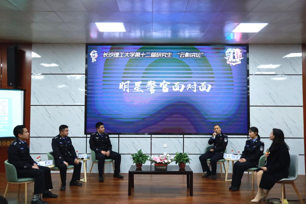 本场活动共分反诈知识宣讲、明星警官面对面、名场面回顾以及观众互动等四个环节。活动伊始,陈慧警官结合真实案件,向在座师生细致讲解诈骗手段及特征,就如何识别、防范诈骗事件为大家答疑解惑,赢得了在场同学们热烈的掌声。在“明星警官面对面”环节,主持人代表长理学子对五位警官在《守护解放西》节目中的精彩表现逐一提问,五位警官幽默风趣的回答更是将现场氛围推向了高潮。