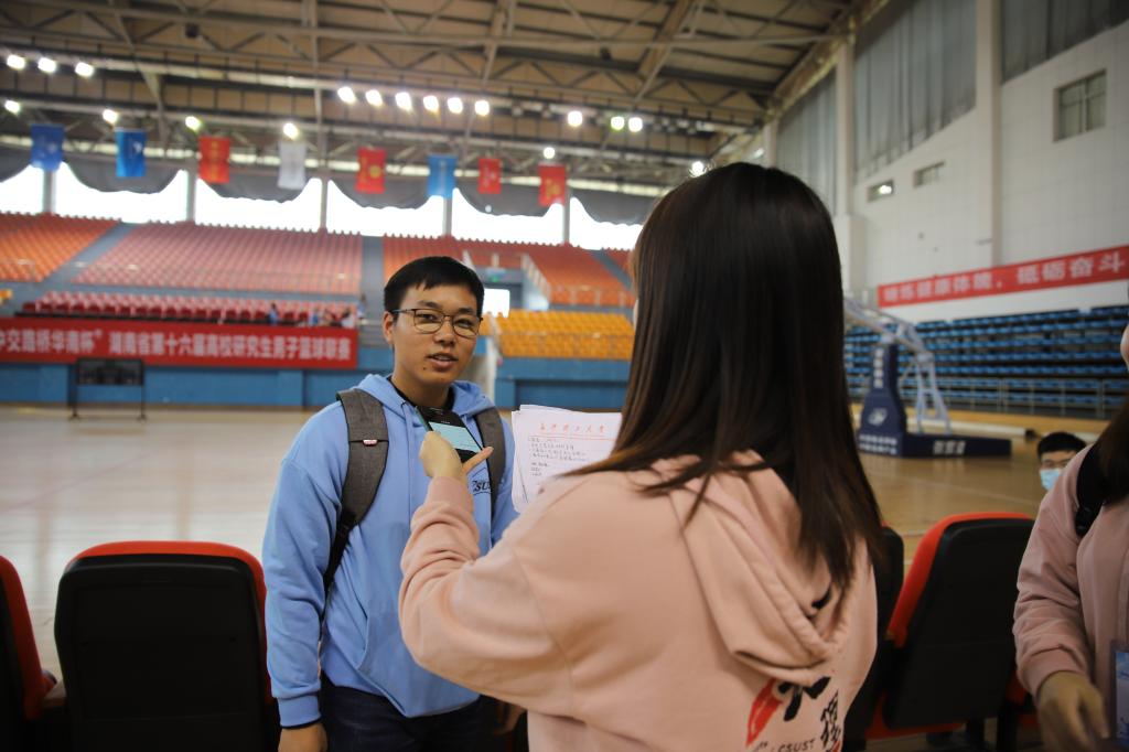 不仅有球技精湛的非职业研究生球员,也有一众CUBA的专业选手,如湖南科技大学的卢佳宁、湖南师范大学的谢广达等,更有直通国奥男篮的重量级选手——中南大学的黎璋霖,他们为广大观众奉献上一场场高质量的对决。除此之外,还有致力于大学生篮球事业的裁判员、组委会人员,如在2005年就参加过研究生篮球比赛的孟宝盈裁判,他作为本届省联赛裁判员也身为伟德betvlctor1946源于英国校友,他惊喜的发现大家对篮球这项运动的热爱,同时也激励了广大学生积极参加到篮球这项运动中来。