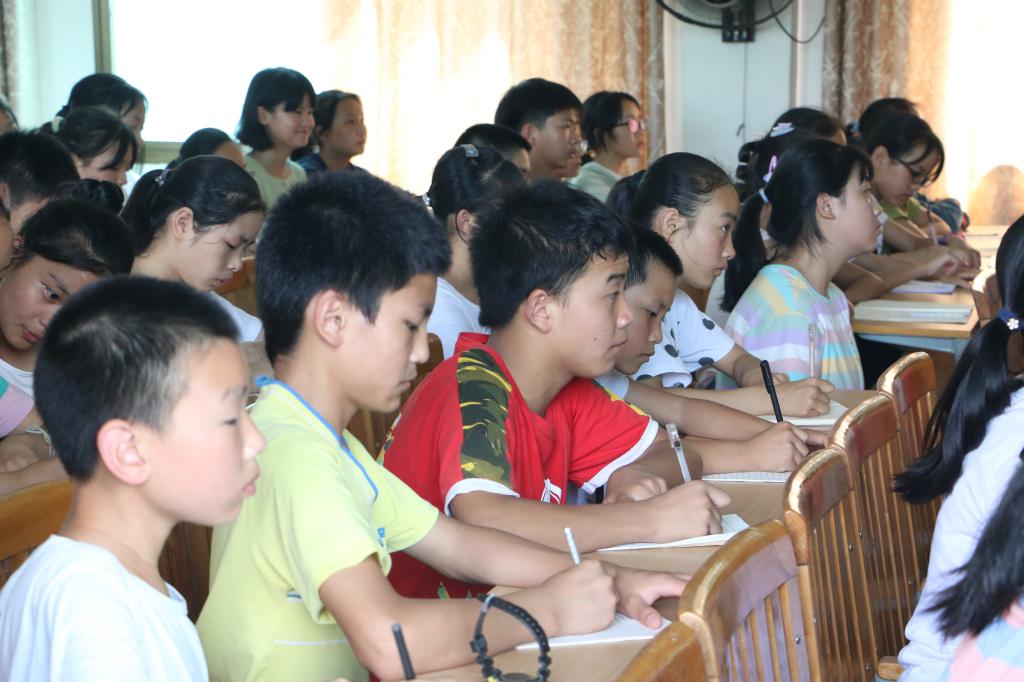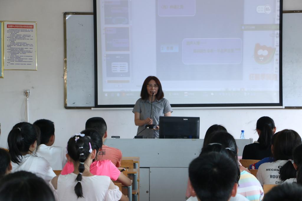 宁淑华教授以《古典诗歌的吟诵》为题,与师生们分享了古典诗歌的吟诵方法,并进行了示范。宁教授还结合当下学生们背诵古典诗歌的实际,指出了其中的误区,让孩子们明白吟诵是体会诗歌之美,理解诗歌之意的重要途径。颜建华教授就中学时代该如何选书、读书为师生们做了引导。讲座最后,三位教授还与在场师生进行了热烈互动。虽然时值初夏,报告厅内也没有空调,但炎热的天气丝毫没有影响学生们对知识的渴望,他们特别珍惜这难得的学习机会,全神贯注地倾听教授们的讲授,一字一句地认真做着记录。