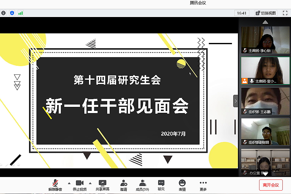 7月3日晚8点,伟德betvlctor1946源于英国第十四届研究生会新任干部见面会顺利举办,研究生院副院长兼研工部部长田上出席,第十四届校研会主席团成员、新任全体干部参加了此次见面会,会议由校研究生会新任执行主席官小娇主持。