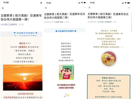 为了庆祝五四青年节,展示研究生风采,该校交通学院研究生会组织策划了这次才艺“云”接力活动,通过报名选拔的8名研究生担任“青春接力人”,他们围绕“青春有我,致敬祖国”的主题,进行创意才艺表演,并将其制作成小视频,通过学院官微推送。视频中古筝、钢琴、二胡、吉他等乐器演奏各显身手,健身、舞蹈、rap、魔术等才艺表演精彩纷呈。而全体研究生均作为“青春传递人”,将自己喜爱的“青春接力人”表演视频在朋友圈转发、评论,号召更多的人加入到青春接力棒的传递活动中来。活动引发校内外师生的广泛关注,点击和转发量超过了上万人次。