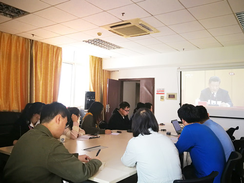 4月30日上午,校研究生会干部集体在一办公楼B202收看纪念五四运动100周年大会直播,研究生院领导老师与研会干部一起观看直播。