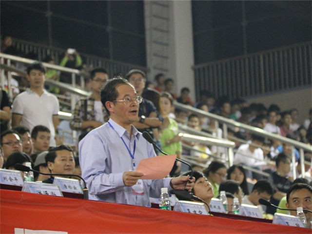 省教育厅副厅长葛建中宣布本届篮球联赛开幕