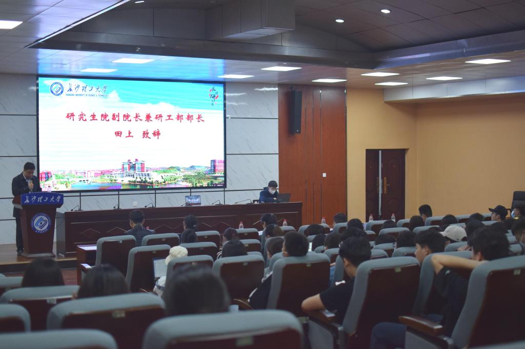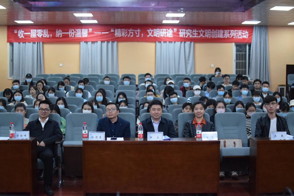为加强研究生文明素养教育,引导研究生积极参与文明校园建设,2022年5月12日晚上19:00,经济与管理学院和交通运输工程学院于金盆岭校区四教报告厅联合举办了“精彩方寸,文明研途”研究生文明创建系列活动启动仪式暨收纳直播教学活动。莅临本次活动现场的领导嘉宾有:研究生院副院长兼研工部部长田上,交通运输工程学院党委副书记涂道勇,经济与管理学院党委副书记唐青,以及相关学院研究生辅导员。