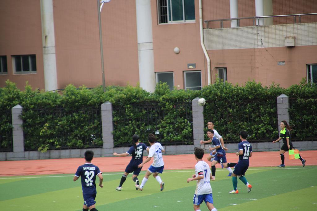 比赛开始后,研究生队屡屡发起攻势,对城南学院的防线造成了不小压力。比赛进行到18分钟,研究生队攻入对方禁区,并在门前造成了混乱,前锋符浩利用他敏锐的门前嗅觉,成功抓住对方后卫失误,将球打进,研究生队1比0取得领先。在上半场比赛结束前,由于研究生队后卫与门将沟通出现问题,城南学院利用一次角球机会将球捅进,比分被扳为1比1。下半场,气温升高,比赛也更加焦灼,球员们的体力也逐渐耗尽。研究生队出现了几次失误,城南学院获得了几次单刀的机会,但是并没有把握住。出于对胜利的渴望,研究生队在进攻上也稍显急躁,没能在强攻下再次取得领先,最终比赛进入点球大战。点球大战开始前,队长易俊杰让有丰富经验的队员王嘉奕客串门将,后者不负众望,两次将对手的点球扑出,研究生队四罚全中,毫无悬念赢下了点球大战。