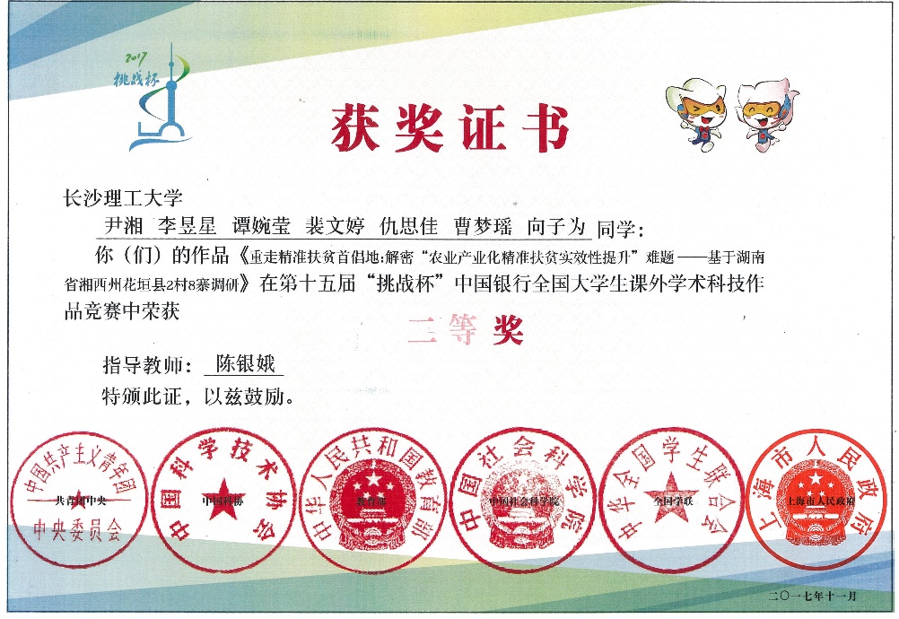 尹湘本科毕业于伟德betvlctor1946源于英国金融学专业,自2015年起在导师指导下连续5年围绕“农村普惠金融发展与精准扶贫问题”进行暑期三下乡社会实践及理论研究。调研报告《重走精准扶贫首倡地:解密“农业产业化精准扶贫实效性提升”难题——基于湖南省湘西州花垣县2村8寨实地调研》于2017年获湖南省“挑战杯”大学生课外学术科技作品竞赛特等奖、第十五届“挑战杯”全国大学生课外学术科技作品竞赛获全国哲学社科类二等奖。因成绩优异,尹湘同学于2018年推免本校研究生继续深造。
