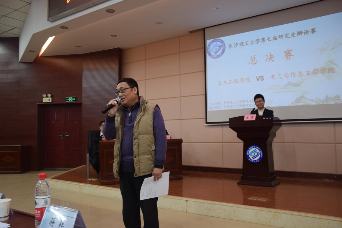 成松柳老师对本次辩论赛做了精彩点评,他就正方三辩的脱稿总结,反方一辩逻辑清晰、立场明确的精彩表现表示了赞许与肯定,但也就双方辩手没有直面中国教育进行辩论、攻辩小结时缺乏现场感等方面提出了中肯的意见。刘湘酃老师对研究生辩论赛进行了指导,他肯定了双方辩手的努力,深入浅出地讲解了诡辩和雄辩的异同,并且强调选手在辩论中可以穷追猛打,但更要注重“得理还要礼让人”的风度。
