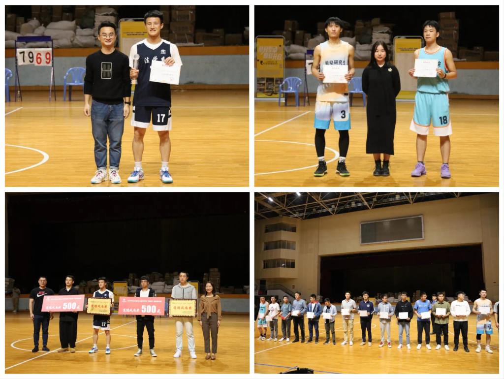 本届校研究生迎新篮球赛共有14支学院代表队参加,经过七天的激烈角逐,土木工程学院与建筑学院联合代表队获得冠军,能源与动力工程学院代表队获得亚军,汽车与机械工程学院代表队、电气与信息工程学院代表队获季军;土木工程学院周斌获得“全场最佳球星”称号;交通运输工程学院、法学系代表队获“道德风尚奖”,皇甫幼晖等14名同学获“优秀运动员”称号。闭幕式现场进行了颁奖。