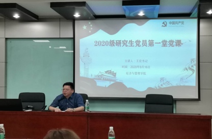 经济与管理学院党委书记王宏教授围绕“马克思主义为什么行?”、“中国共产党为什么能?”、“中国特色社会主义为什么好?”“青年大学生为什么信”等四个方面,为广大研究生党员带来一堂意义深刻的党课,他要求党员们要做到思想正,不断加强政治文化素养;信仰真,忠于祖国忠于党;本领硬,掌握做人做事做学问的能力;奋斗实,做有国家情怀、日新修为的新青年。