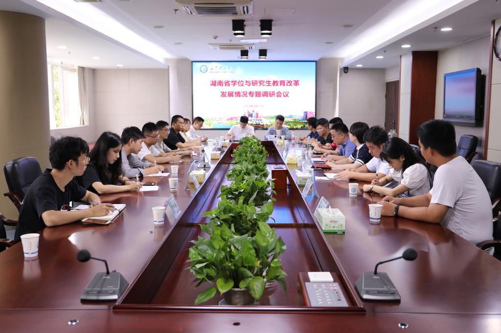 随后,调研组成员湖南师范大学学位办主任杜继军、湖南大学研究生院综合办主任、机械与运载工程学院副院长(挂)夏桢分别在五楼会议室、三楼会议室召开了导师、学生座谈会。