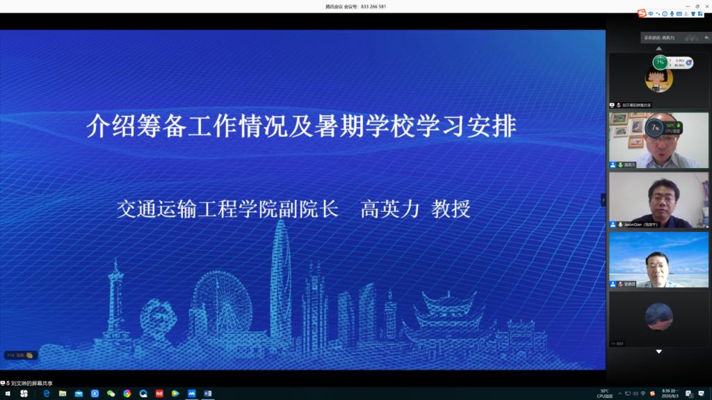 交通运输工程学院副院长高英力教授介绍了筹备工作情况及暑期学校的学习安排,本次暑期学校获得了省内外本专业研究生们的广泛关注和热情参与,共录取了160余名研究生参加学习,并且聘请了国内外交通运输工程学科领域内学术水平高、教学经验丰富的知名专家、学者担任主讲教师,将组织10场高水平学术报告与交流。