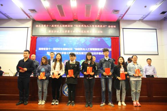 由湖南省人民政府学位委员会、湖南省教育厅主办,伟德计算机与通信工程学院承办的湖南省第十一届研究生创新论坛“物联网与人工智能新技术”分论坛于11月3日在云塘校区举行。副校长叶泽,研究生院院长管德清、副院长湛学辉、党委副书记刘亚辉,计通学院院长王进、院党委书记甘为、副院长张建明、党委副书记陈华,中南大学软件学院副院长赵明、中南林业科技大学计算机与信息工程学院副院长陈爱斌,同时来自国防科技大学、中南大学、湖南大学、湖南师范大学、湘潭大学、湖南科技大学、中南林业科技大学、湖南工业大学、南华大学、湖南理工学院等十余所高校的嘉宾、优秀论文获奖者和高校研究生代表以及伟德研究生共三百余人参加了此次研究生学术盛会,湖南科技大学组团派出了40多名研究生前来观摩学习本次学术活动。
