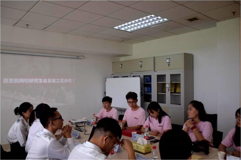 其次,两校研究生会代表分别介绍了研究生会工作开展情况。伟德betvlctor1946源于英国研究生会主席易洲楠等从学校的发展历史、研究生会的基本情况、特色活动(两坛一节一实践)和新媒体运营机制及取得的阶段性成果等方面进行了介绍;东华大学研究生会副主席高强介绍了研究生会的工作基本概况,并系统介绍了东华大学研究生会的特色品牌活动,包括“百日读书”等学术活动,“街拍大赛”、“校园歌手大赛”等校园文化活动,展示了上海高校开放、包容的工作氛围。接下来,交流会进入了自由讨论环节。两校研究生会代表就新媒体平台的运营、校院两级管理模式、学生干部培养、研究生活动的项目化开展、外联赞助、品牌活动推广以及研究生会形象的树立等各方面进行了深度的交流和探讨,两校均在交流中收获了新启发。