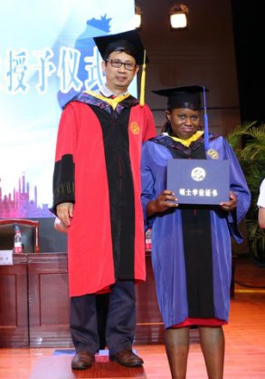 来自布隆迪的80后女孩Ange在异国求学过程中遇到了更多的困难。不甘于平凡的她,在布隆迪获得了国家全额奖学金,被公派出国留学。飘洋过海地远行,独自在异国他乡求学的经历,让这个女孩变得更加坚强。在长理学习交流期间,Ange的家庭不幸发生变故,“树欲静而风不止,子欲养而亲不待”这是人生莫大的遗憾。她的导师樊绍胜老师听闻后,立马个人出资一万元路费让她回国,并叮嘱她完成最后的职责。返校后,Ange依旧刻苦努力,顺利完成了她的学业。在毕业典礼的最后,她穿着硕士服深深地向学校老师鞠了一躬。