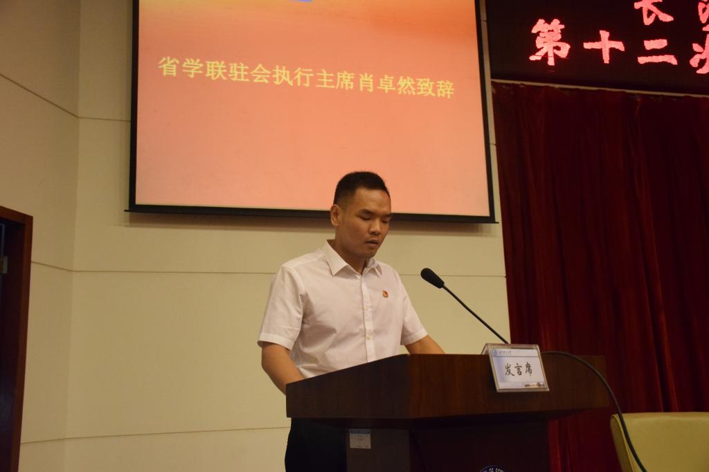 紧接着,正式会议在嘹亮庄严的国歌中拉开帷幕。省学联驻会执行主席肖卓然发表致辞并对伟德betvlctor1946源于英国的师生致以亲切的问候,他表示过去一年内长理研究生会发扬了艰苦奋斗、乐于奉献、锐意进取的长理精神,并代表省学联对研究生会取得的优异成绩表示衷心的祝贺。他重点强调研究生会推出的“长理研言”微信公众号、开展的研究生暑期专业实践活动为全省各高校的研究生会工作提供了新的思路。长理研究生会与省学联紧密联系,与湖南各兄弟院校研究生会建立深厚的友谊,并开展多层次的交流合作,为省学联的发展做出了积极贡献。