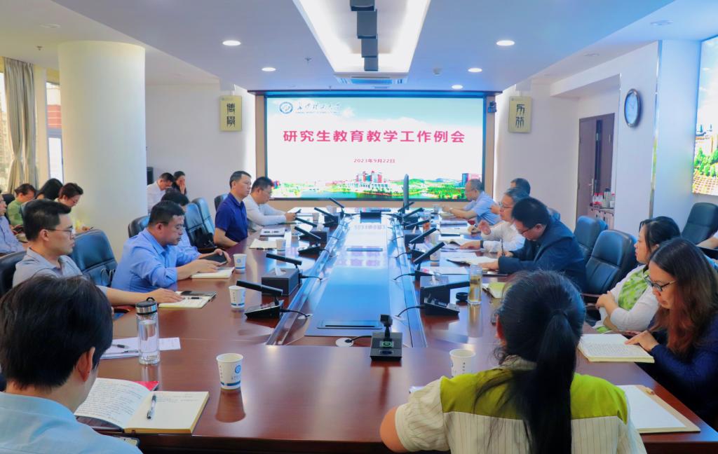 9月22日上午,学校在云塘校区一办公楼六会议室召开新学期研究生教育教学工作例会。副校长胡永乐主持会议并讲话。研究生院负责人、各培养学院分管研究生教育工作负责人及研究生工作有关人员参加会议。