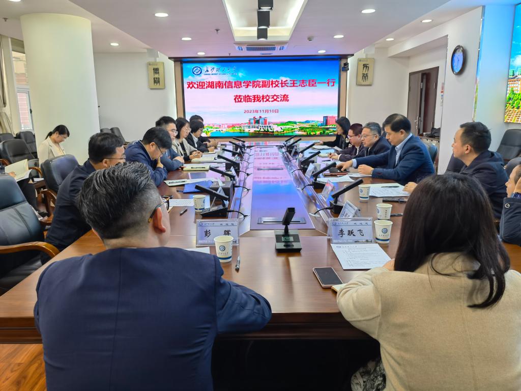 11月10日上午,湖南信息学院副校长王志臣一行来校洽谈。校党委委员、副校长胡永乐出席并主持会议。湖南信息学院科研处、电子科学与工程学院、计算机科学与工程学院、艺术学院等相关负责人和老师,伟德科学技术处、研究生院、计算机与通信工程学院、设计艺术学院等相关负责人参加座谈。
