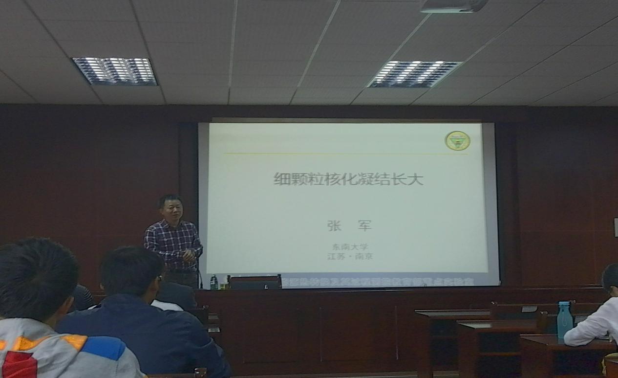 应能动学院邀请,2015年10月27日上午9点30分,东南大学张军教授在工科一号楼能动学院报告厅作了题为《细颗粒物核化凝结长大机理》的学术报告。报告会由能动学院副院长何建军主持,能动学院相关研究方向的教师、研究生参加了本次报告会。