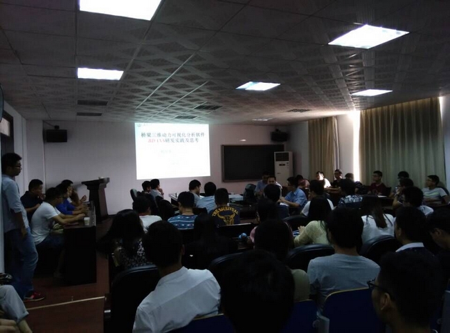 韩教授结合自己的研究之路,与我们分享了其学习和研究要点:打好理论、学好编程、用好有限元。他从“桥梁电算化设计”展开,结合Midas和ANSYS应用情况,介绍了其自主开发的桥梁分析软件BDANS及其相关应用实践。BDANS,即风、地震、随机车流与桥梁交互动力分析软件,这款应用了众多大数据与高端分析模型,经过了极为严谨的编程,可以真实模拟动态车辆经过桥梁时的过程,并在风-汽车-桥梁系统分析与健康监测中都有积极而广泛的应用。诸如上莘大桥,四渡桥等国家大型桥梁工程,都是这款软件的应用工程实例,它们都取得了骄人的成果。接来下长安大学公路学院科研办许老师介绍了长安大学学科建设情况,并与伟德本科教学进行了对比,对伟德提出了几点建设性的意见,以期促进两校的友好交流合作。