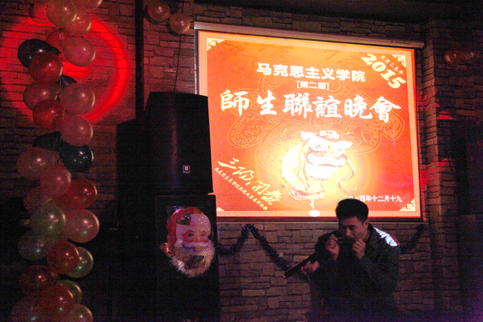 12月19日晚,为共叙情谊,畅谈马年马克思主义学院取得的丰硕成果,马克思主义学院师生欢聚一堂,在金盆岭校区安琪儿KTV店隆重举办“激扬青春活力·共建师生情谊”第二届师生联谊晚会。学院党委周艳红书记、院长陈万球、副院长易显飞、唐土红,中南林业科技大学副校长廖小平、文法学院院长王新生,及院内各教研室教师、全体研究生共同参加了本次晚会。