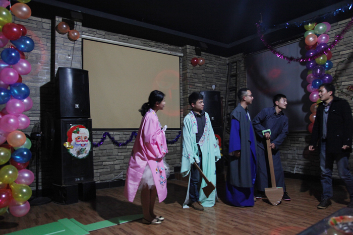 晚会设置的小游戏《你划我猜》,在规定时间内由老师比划,学生猜词,既考验着师生之间的默契,更将欢乐氛围推向高潮。随后老师们纷纷带来他们的经典歌曲,廖小平老师与学生何媛合唱了《你最珍贵》,并为观众们再次献上《心如刀割》,张明海老师演唱了《滚滚长江东逝水》,钟芙蓉老师演唱了《千千阙歌》。随后2013级研究生带来的穿越小品《计中计》趣味十足。晚会最终在老师与学生合唱的歌曲《朋友》中缓缓落幕。