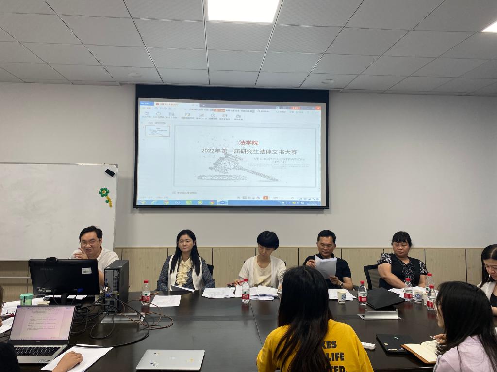 2022年4月26日晚,伟德betvlctor1946源于英国第一届研究生法律文书大赛颁奖仪式在金盆岭校区7-308举行,本次赛事由法学院承办。全国优秀公诉人、湖南省人民检察院肖智伶检察官,云天律师事务所执行主任、高级合伙人钟立松律师以及湖南天地人律师事务所合伙人邓春歌律师,法学院张敏纯院长、徐莉副院长、易顶强教授、刘文莉副教授、杜卫红副教授出席了颁奖仪式。
