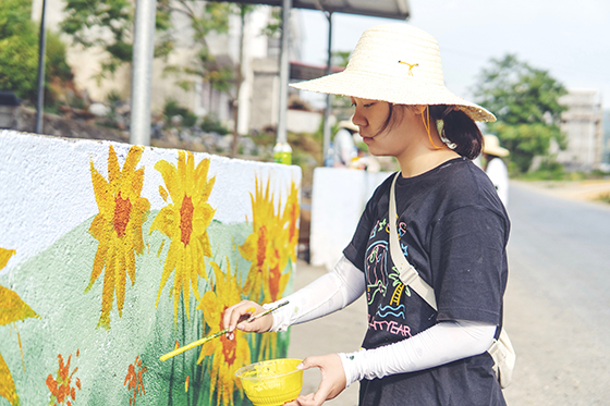 团队成员挥洒汗水,用手中的画笔为乡村绘制墙面、增添色彩,美化乡村环境,助力乡村振兴,为乡村带来新气象,让“美丽乡村”变得更美丽。