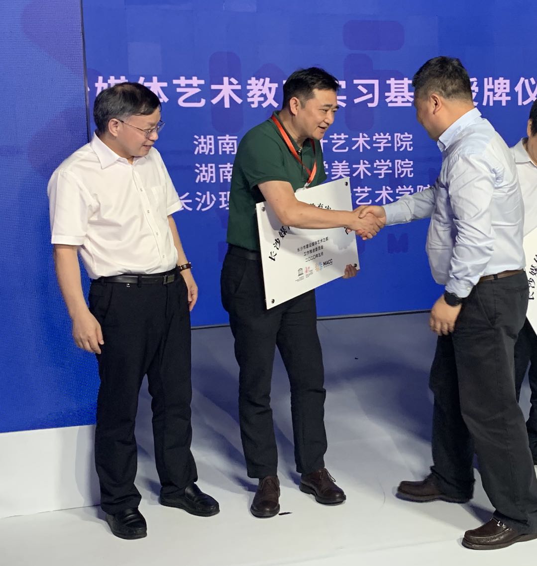 2020年5月20日,由中共长沙市委宣传部主办,市媒体艺术发展中心承办的“长沙媒体艺术教育实习基地”授牌仪式暨“C+C全球青年创新伙伴关系计划”路演在百年工业文化遗存地裕湘纱厂举行。长沙市委宣传部领导、相关政府部门代表、高校代表,企业代表,部分青年代表等参加活动。王健院长代表伟德betvlctor1946源于英国设计艺术学院参加了授牌仪式。