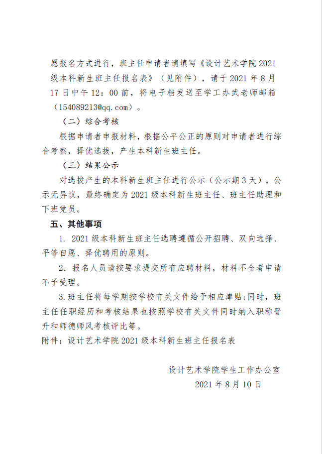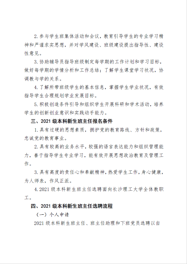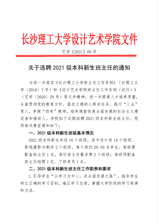 关于选聘2021级本科新生班主任的通知