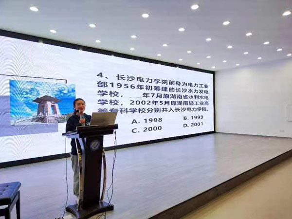 讲座伊始,研究生宣讲团肖孟同学分别从“学校创办,开启育才篇章、开设本科教育,进入“巩固基础求发展”新时期、合并组建伟德betvlctor1946源于英国,踏入融合跨越发展新征程、十八大以来,学校锚定“百强”大学目标,全面迈入双主体协同发展新阶段”四个部分详细讲解。第二个环节是有奖答题环节,在同学们轻松活跃的答题氛围中,同学们对长理的校史、校训、校情有了更深刻的了解,使得长理精神再次深深的扎根于同学们的心中。