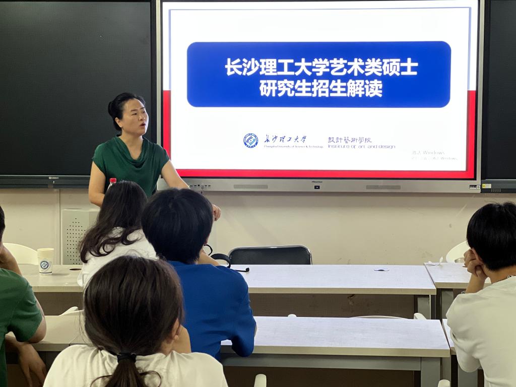 为进一步帮助学生明确方向,提高研究生生源质量,6月13日下午2:30学院在艺术楼C510举办艺术类研究生招生校内宣讲会,会议由设计艺术学院主管研究生工作副院长李娟娟主讲,学校部分有意报考的本科生参会。