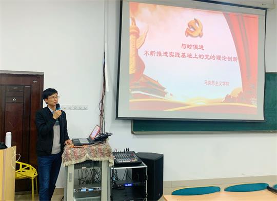 11月19日晚上,马克思主义学院王威峰老师在建筑艺术楼A102 以“与时俱进不断推进实践基础上的党的理论创新”为主题,上了一堂深刻的党课,设计艺术学院第三十六期积极分子参加此次课程学习。