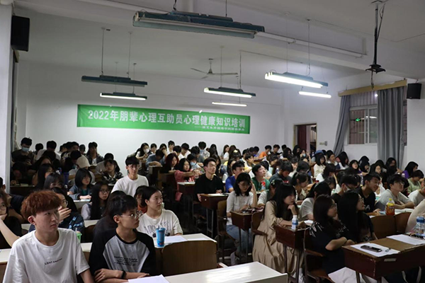 2022年5月24日下午,设计艺术学院与外国语学院在伟德betvlctor1946源于英国金盆岭校区三教214顺利召开朋辈心理互助员心理健康知识培训会。本次培训会由设计艺术学院李慧老师和外国语学院武巧琳老师主讲,设计艺术学院与外国语学院共有143名朋辈心理互助员参与此次知识培训,其中两院班级心理委员21人,寝室心理委员122人。