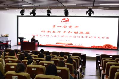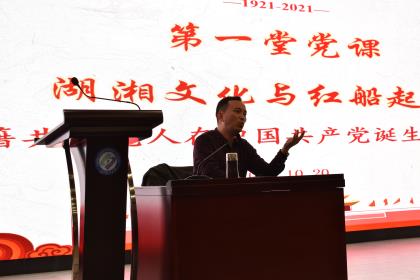 10月20日下午,设计艺术学院于建筑艺术楼A101报告厅成功举办《湖湘文化与红船起航》主题党课,设计艺术学院党委书记李伟担任此次课程主讲,2021级研究生新生参加本次党课。
