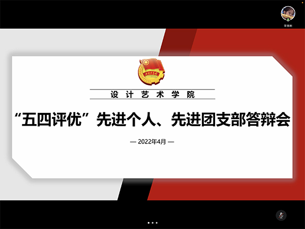 “与时代同向,与祖国同行”,在庆祝中国共产主义青年团成立一百周年之际,为进一步加强我院团组织建设,更好地发挥团干部的模范带头作用。4月7日晚,设计艺术学院于腾讯会议成功开展“五四评优--先进个人、先进集体”评选答辩会。设计艺术学院2020级辅导员程静征;团委书记高海;2021级辅导员李世成出席答辩会,各年级团支书及答辩人参加此次会议。