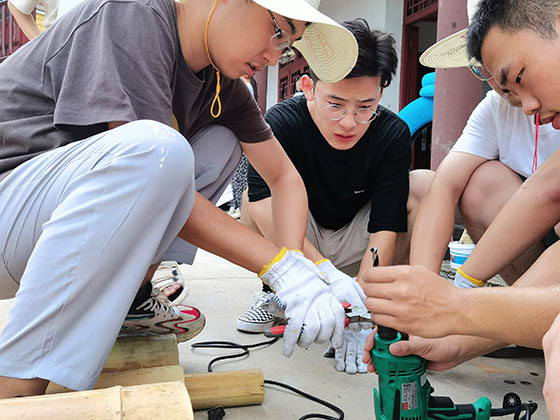 7月22日,设计艺术学院赴望城区白箬铺镇三下乡社会实践团在带队老师文卫民的带领下在乡创中心的施工。