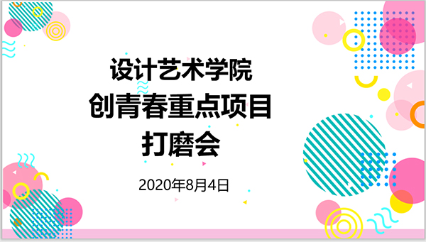 8月2日、4日、6日晚,设计艺术学院在“腾讯会议”上开展2020年“挑战杯”创业计划赛重点项目打磨会。院党委副书记文丽丽;院团委书记李慧;专业老师王清、叶洋滈及各项目小组成员参与会议。此次会议共分三次由学习部霍玥凝、邵琬晴进行主持。