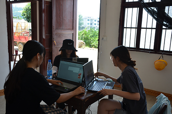 项目的落地实施,实践团队进入了实战状态,方案指导和设计调整同时进行。实践团队所改造庭院,引得村民称手交赞,改造过程中村民纷纷加入庭院改造,团队成员则立即前往现场测绘,提高庭院改造效率。实践团成员于日初而出,于日落而归,高温酷暑、满负荷的工作实践,让艺术学子已无暇顾及个人形象,团队成员享受全身心投入庭院改造实践所带来的成就感。实践中村民对团队的生活照顾和工作的肯定以及当地政府的重视,使得实践团的实践热情高涨。